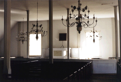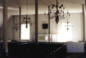 The sanctuary holds 1000 people seated in handmade walnut pews. Lighting is with chandeliers