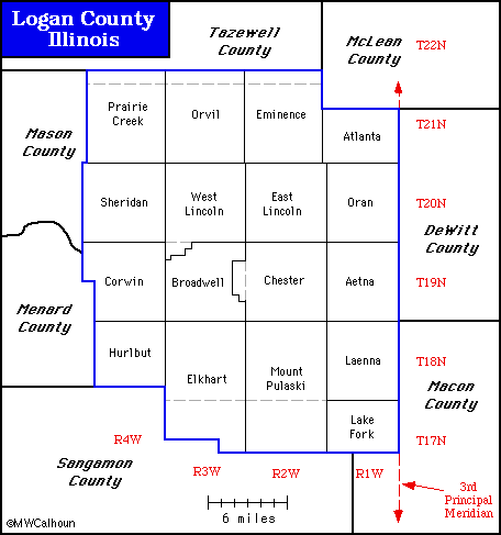 The eastern border of Logan County is formed by the Third Principal Meridian, a survey line from which the townships are measured.