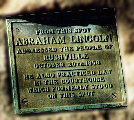 From this spot Abraham Lincoln addressed the people of Rushville October 20th 1858.